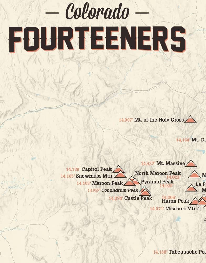 Amazon.com: 58 Colorado 14ers Checklist Map 11×14 Print (Tan