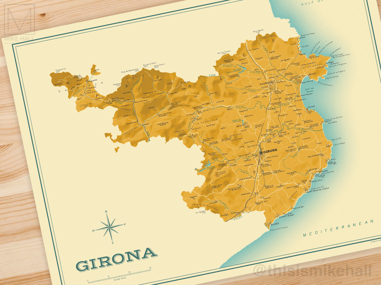 Girona (Spanish Province) map giclee print โ Mike Hall Maps