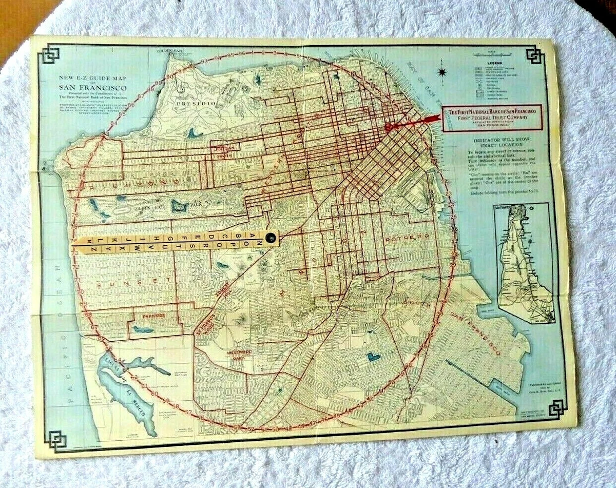 VINTAGE LOVELY MAP WITH DIAL INDICATOR SAN FRANCISCO PARCEL CA